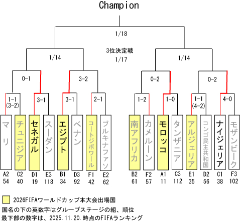 過去3度王者に輝いているスーパー・イーグルスは準決勝で地元モロッコと対戦することになります